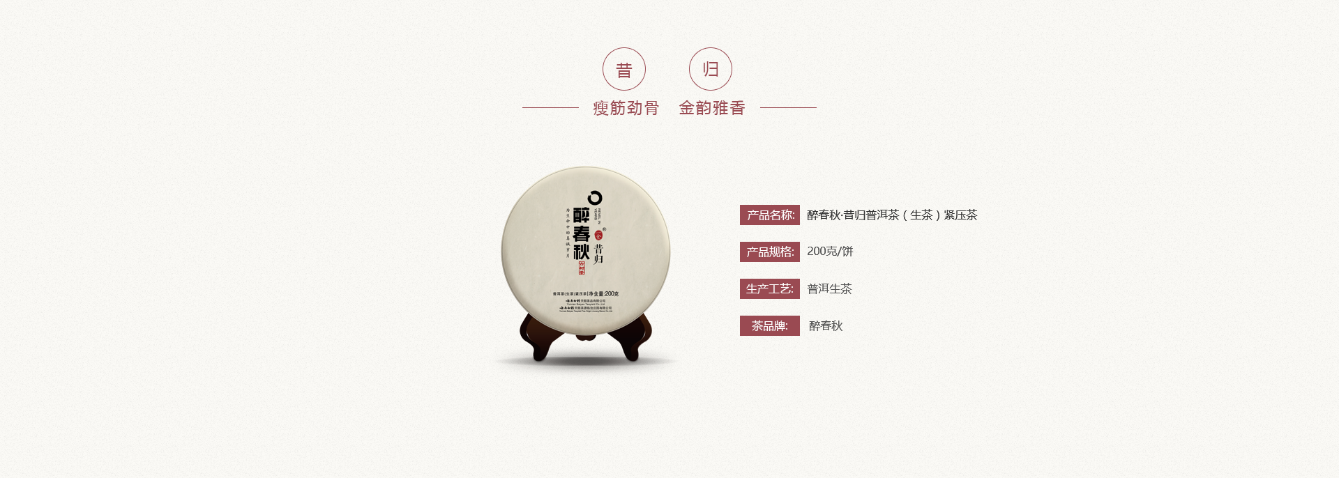 醉春秋·昔归普洱茶(生茶)紧压茶 (200克)